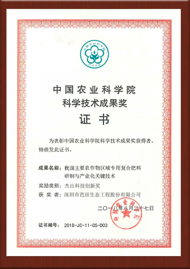 2018年北京市科學(xué)技術(shù)獎-我國主要農(nóng)作物區(qū)域?qū)S脧?fù)合肥料研制與產(chǎn)業(yè)化一等獎