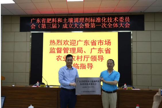 劉永譚調(diào)研員在會上宣讀了《廣東省市場監(jiān)督管理局關(guān)于批準成立廣東省肥料和土壤調(diào)理劑標準化技術(shù)委員會(第三屆)的通告》(2025年第53號),廣東省肥料和土壤調(diào)理劑標準化技術(shù)委員會(第三屆)的編號為GD/TC57,秘書處承擔單位為深圳市芭田生態(tài)工程股份有限公司。技術(shù)委員會由27名委員組成,徐培智任主任委員,馮軍強、林日強任副主任委員,華建青任秘書長,彭桂香、譚占鰲任副秘書長。劉永譚調(diào)研員為秘書處承擔單位授牌,劉永譚、黃娜、徐培智等領(lǐng)導為委員逐一頒發(fā)聘書。